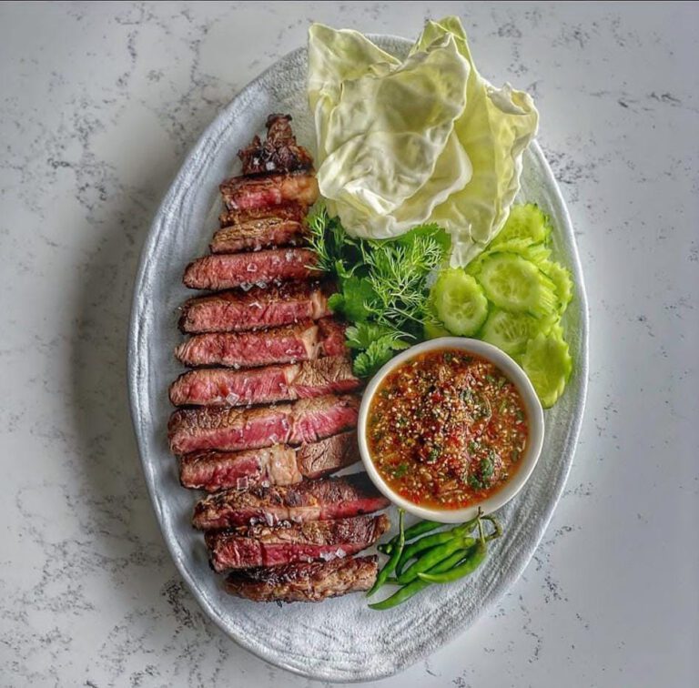 טוב מפה לשם הבנתם שאני לא בדיוק חובב בשר אבל יש מנות שאני לא יכל לסרב להם וזו בדיוק מנה כזאת, אנטריקוט ברוטב תאילנדי, עלי כרוב, כוסברה, שמיר, מלפפון ורוטב תאילנדי על בסיס אורז קלוי…. ולהרכיב ביס ?