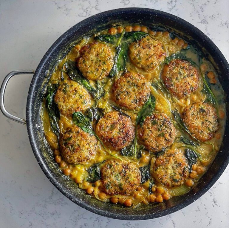 שהבצל מזהיב מוסיף מלח, סוכר, מיץ לימון, סילאן וכורכום מוסיף את הקציצות, שיני שום, תרד, כוס חומוס מבושל וחצי כוס של מי הבישול של החומוס.